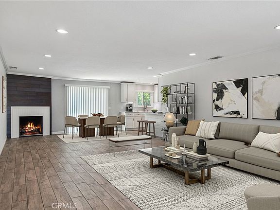 Move-in ready, single-story home located in a wonderful Chino neighborhood and featuring 3 Bedrooms/2 Bathrooms with 1,581 SF of living space and sitting on a 7,350 Sf Lot. The exterior offers brick accents with covered front porch. This home has been highly upgraded and features a spacious and open floorplan, vinyl plank flooring, recessed lights, gorgeous crown molding, custom baseboards, a Newer AC and ducting. Enter into the Living Room and Dining Area with lots of natural light and a fireplace with full tile-wall feature and a slider to the backyard. The remodeled Kitchen has beautiful counters with breakfast bar area, white cabinets with lots of storage space, stainless steel appliances including a dishwasher and a gas range with hood, and there is a deep single basin sink. The Laundry Room with included washer and dryer sits just off of the kitchen and has on-trend barn-doors, and there is a direct access door to the attached 2-Car Garage. All 3 Bedrooms are generously sized and have ceiling fans. The large Primary Suite offers a gorgeously updated private Resort-Like ensuite bathroom with dual sink vanity and a walk-in shower with seamless glass doors and custom tile. There is also an upgraded Full-Size hall Bathroom for the 2 Secondary Bedrooms to share that has a tub/shower combination and also offers custom tile. Enjoy the private, flat backyard with built-in covered patio, this space is ready for the new owner's design! This home also features possible RV Parking with an extended paved driveway, and has NO HOA Fees, a Low tax rate, and is close to schools, shopping, parks and easy access to 60 Fwy!