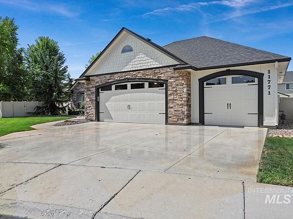 A beautiful custom built home by one of Idaho's premier builders, Clark & Co. Featuring 3 bedrooms, an office, and a bonus/theater room equipped with built in surround sound. This home offers the perfect blend of comfort, high end finishes, and affordability. Step inside to find soaring 11ft ceilings, beatiful hardwood floors, a stone gas fireplace, custom cabinetry, stainless appliances, double oven, and new carpet throughout. You'll love the beautiful mature landscape, covered rear patio w/ hot tub hookups, storage shed, and pull-thru 3rd bay garage doors with rear parking. This home is wired and ready for a full security system and offers great privacy at the end of a quiet cul-de-sac. Don't miss this opportunity to own a beautiful home in a highly sought after area central to Boise/Meridian. Refrigerator, Washer/Dryer included.