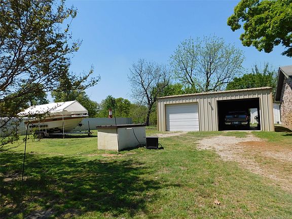 Priced $10K BELOW APPRAISAL! Only 1.5 miles to boat ramp on Lake Eufaula. 2 large bedrooms, w/large closets, 2 baths(one with Safe walk-in tub), huge kitchen w/large island and tons of cabinet space, open living/dining area, pantry, large utility. Shop, Carport, 2 car detached garage, water well for outdoor watering, Garden area and Apple and Cherry trees, plus other flowering shrubs & trees! VERY MOTIVATED SELLER!