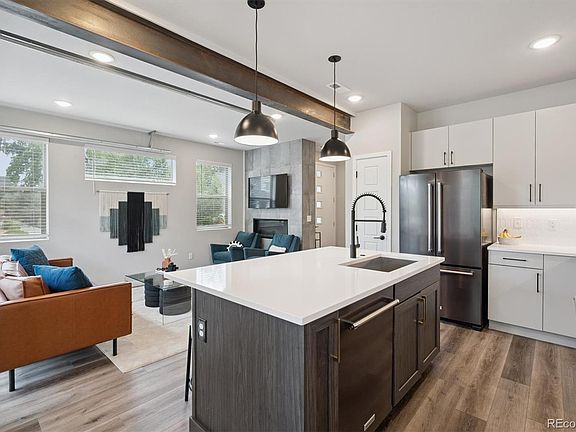 This corner-unit townhome is a total showstopper — stylish, comfortable, and made for easy entertaining! Designed with open-concept living in mind, the main level features a standout garage-style door that rolls up to reveal a private patio—bringing that coveted indoor-outdoor lifestyle to life. Built with modern design and high-end finishes, this light-filled home showcases a sleek kitchen complete with quartz countertops, black stainless steel appliances, gas range, and an oversized island with bar seating—ideal for everything from weekday breakfasts to weekend happy hours. A cozy fireplace sets the mood in the living room, while a dedicated dining area offers the perfect space for everything from intimate dinners to lively gatherings. Upstairs, you’ll find three spacious bedrooms, including a luxurious primary suite with a spa-inspired bathroom, double vanities, and a huge walk-in closet. Two additional bedrooms and a flexible loft space—ideal for a home office, studio, or whatever your next chapter calls for. Conveniently located near a large park with 6 pickleball courts and scenic bike paths, plus easy access to I-70 for quick trips to the mountains, Old Town Arvada, or Golden. With newer construction, smart upgrades, and an unbeatable location, this home is a total standout. This is modern Colorado living at its finest—don’t miss your chance to make it yours!