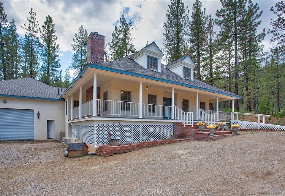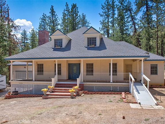 FIRST TIME ON THE MARKET! This one-of-a-kind Frazier Park 5 bedroom 4 bath home on 5 acres of scenic landscape with amazing tranquil views. As you drive into the circular driveway of this custom-built home you will observe the wrap-around porch with stunning views, the spacious garage/workshop, the multilevel usage, and the charm of a farmhouse with all the modern conveniences. The home is 3223 sqft, with 9 ft ceilings, built-in fire sprinklers, and earthquake retrofitting shear walls. Upon entry is a large formal living room. It has tons of natural light and a striking wood-burning fireplace with a custom mantle as its focal point. There is a spacious formal dining room with tons of light. The kitchen has a big eat-in dining area and incredible views. It also boasts beautiful upgraded cabinets, a double oven, a trash compactor, and tons of countertop space. Standing at the kitchen sink is splendid with endless stunning views. Adjacent to the kitchen is a large family room with tons of windows showcasing the incredible lush backyard landscape and multiple outdoor seating areas. Down the hall is the large primary bedroom. It has access to the front wrap-around porch and additional access to the back porch through the en-suite bathroom. The primary bath includes dual sinks, a freestanding clawfoot tub with a separate freestanding shower, a private toilet area, and a walk-in closet. There is an additional downstairs bedroom with a ceiling fan, and built-in shelving that is currently being used as an office. Downstairs there are two additional half-baths for quests and convenience. Other areas downstairs include a large laundry room with abundant shelving, a walk-in large pantry, and access to the downstairs basement and garage. As you head upstairs you enter a loft with built-in shelving, surrounded by 3 bedrooms that have beautiful views, natural light, and lots of character. There is an additional hall bathroom upstairs. The large walkout basement has access through the downstairs hallway and from the side front yard. Could be used for a gym, an additional office, Etc...let your imagination go. The garage is massive at 24 x 40 ft with a ceiling height of 14 ft, large enough for a toy hauler, a boat, or an RV, depending on their size. Inside the garage is an additional big workshop. The backyard is a show-stopper. There is a big patio for relaxing or play. Gorgeous nature as far as you can see. The property includes several sheds and a greenhouse.