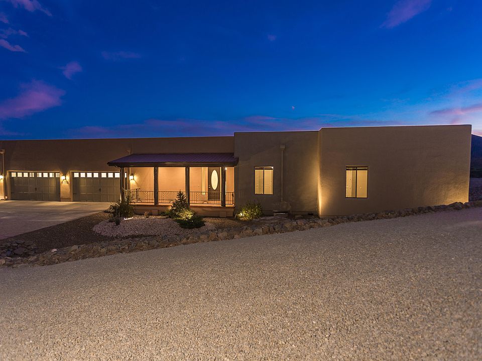 This grand contemporary style home is a must see! The home has never been lived in. It has raised ceilings, all new appliances, it is furnished with all new lighting fixtures, painted freshly inside and out, landscaped to perfection, and in a more private area than a neighborhood. The bathrooms are equipped with jetted tubs. The garage is roomy- fitting up to four cars inside. In addition, RV parking is available. Finally, to top things off, there are views of the mountains visible from the wrap-around deck and the patio of the home.