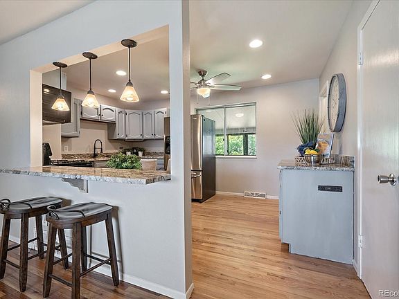 This charming property features a ranch-style layout with the added bonus of a basement, providing ample space for your lifestyle needs. The main level of the house encompasses two bedrooms and full bath that has been thoughtfully updated, ensuring a modern and functional space. The updated kitchen is a highlight of the home, featuring contemporary amenities and a stylish design that will inspire your culinary adventures. The kitchen seamlessly flows into a cozy family room, creating an inviting space for relaxation and entertainment. Descend to the basement to discover even more possibilities. The basement includes a versatile recreation room, ideal for hosting gatherings, unwinding, or pursuing hobbies. The basement also offers a versatile office or bonus room, which could potentially serve as a non-conforming bedroom, providing flexibility to suit your specific needs. In addition to the wonderful interior features, this property offers a low-maintenance front yard with artificial turf, minimizing the time and effort required for upkeep. The large backyard presents a blank canvas, inviting you to personalize the space and create your dream outdoor retreat. Parking and storage needs are well-catered for with the oversized two-car garage, providing plenty of room for vehicles and additional items. What makes this property truly exceptional is the UNBELIEVABLE SHOP/STORAGE AREA, which also could accommodate a potential for car lift. The GARAGE DOOR HEIGHT 11x17 will be accommodate larger vehicles or all your toys. Located in a convenient neighborhood, you'll have easy access to a variety of amenities including restaurants, shopping centers, and the nearby I-25 for convenient commuting. The property is also within walking distance of the RTD public transportation, ensuring a stress-free option for getting around. Newer roof, siding, hot water heater, refinished floor, updated kitchen, and artificial turf front yard