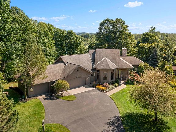Custom-designed cedar home on over 7.5 acres with 600’ of frontage along the 5th hole at Wolf River Golf Park. This 3 bed, 3.5 bath home features tall ceilings, a gourmet kitchen, main-floor primary suite with deck access, formal dining room, bonus/craft room, main-floor laundry, and birch/maple floors. Enjoy 2 gas fireplaces, a screened porch, and a walk-out lower-level guest suite with kitchenette. Outside offers an expansive deck, landscaped gardens, attached 2-car garage plus additional garage, and solar panels that reduce utility costs. A private, year-round retreat surrounded by wildlife and beautiful views. You're just east of the scenic M-22, Crystal Mountain’s slopes and fairways only 20 minutes away, and the awe-inspiring Sleeping Bear Dunes just a 40-minute drive. Traverse City’s vibrant food, wine, and music scene is an easy day trip, and Arcadia Bluffs Golf Club is just around the corner for world-class play and unforgettable sunsets.