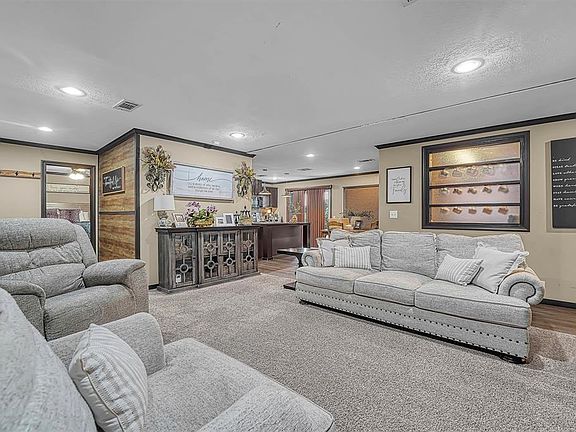 COUNTRY HOME in Prime Location with GORGEOUS views and Lots of space ! This 3 Bed 2 Bath Rural property is AMAZING ! Very well maintained home boasts of a large open Living Area to Kitchen with Eating Bar and Fabulous Back Yard Views ! Kitchen has modern farmhouse touches with Sliding Barn Door to Pantry ! Master Bedroom features an expansive Master Bath complete with spacious soaking tub, Large walk in Shower, Double Vanities and tons of storage and space. Large Laundry Room with Bonus Space for Hobby Area. Whole Home Water Conditioning system. Property sits on a little over 2.5 acres so you have great privacy and the absolute best views while sitting on the back porch. Back Porch faces West with NO neighbors ,a wooded area behind and will give you the ultimate views of those Oklahoma sunsets we all love ! A large Barn/Garage/Workshop with 3 Overhead doors is adjacent to house and offers lots of room for your vehicles, toys and workspace !