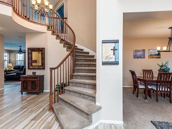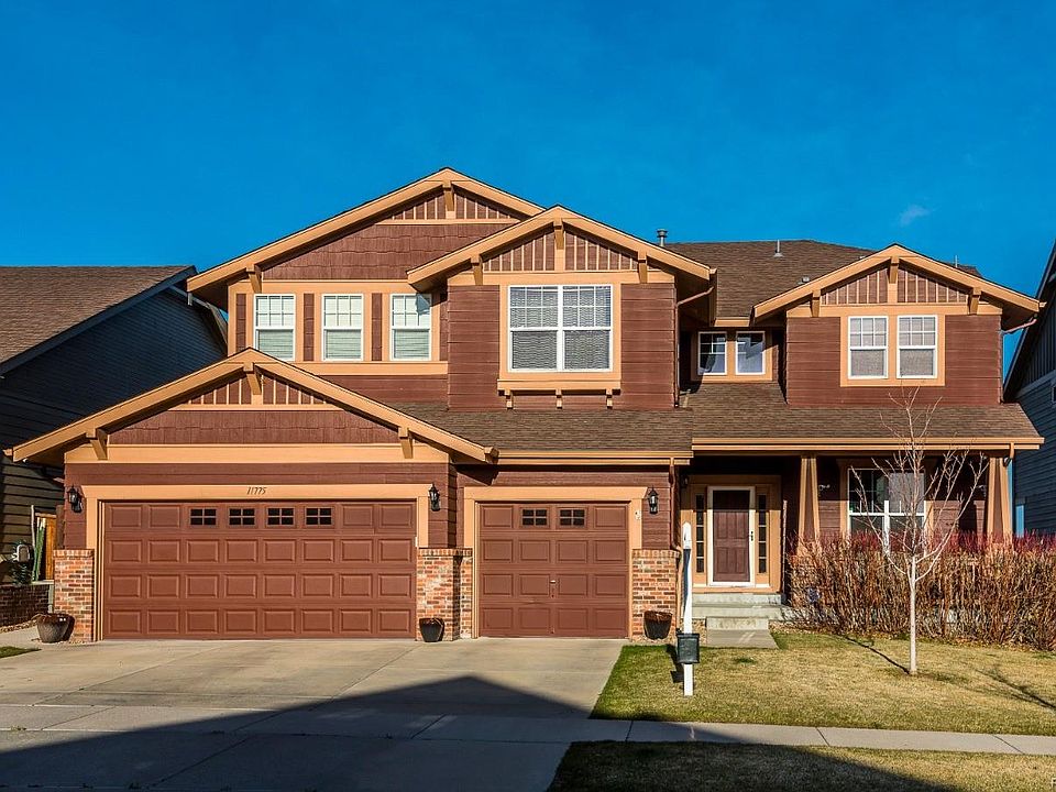 Enjoy gorgeous CO sunsets in this beautiful 5-BR home in desirable Newlin Meadows! You are greeted w/a majestic staircase & vaulted ceilings. Formal living & dining rm ??? perfect for entertaining. Gourmet kitchen w/cherry cabinets, gas cooktop, dble oven, SS appliances, island, brkfst bar & granite counters. Mtn views from the kitchen, eating area & grt rm w/fireplace. Trex deck w/gas line. Main Floor Study w/French doors. Lrg loft upstairs w/mtn views. 2 roomy bdrms share Jack-n-Jill bath. Add'l secondary bedrm w/ensuite bath. Lrg master w/ vaulted ceilings, fireplace, 5-pc bath & huge walk in closet w/dressing island & custom shelving! Full finished walk-out basement w/ bar w/ granite counters, sink, fridge & kegerator. Perfect set up for entertaining w/sitting area & gas fireplace to keep the chill away. Bedrm, bath, and 2 bonus rooms which could be used as an exercise room, craft room, play room or add'l office round out basement. Great location w/parks, trails & close to schools!