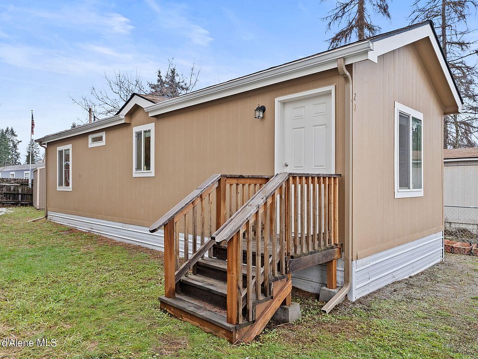 Newer 2018 1 bed/1/bath manufactured home on Hauser Lake's beautiful waterfront community! This waterfront manufactured home community is located on the shores of Hauser Lake just a few minutes from Post Falls, Spokane, Coeur d'Alene, or the freeway. The lot rent is only $440 per month and includes water, sewer, and garbage. The home boasts vaulted ceilings, LVP flooring, and a large bedroom. The lot features a fenced back yard, ample parking, and a huge storage shed. A spot this close to Hauser Lake under $100,000 is very rare!