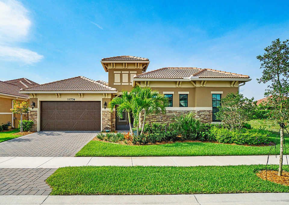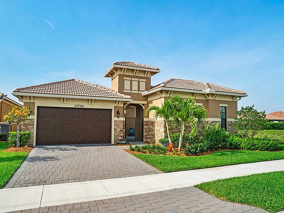 Fabulous opportunity to own this extremely sought after Huntsford model home in Four Seasons Parkland. Tuscan Elevation. Less than one year old. Private front gate opens onto a beautiful paved courtyard perfect for entertaining. This popular model has a separate Casita equipped with a full Bathroom. Perfect for a home office, with many people working from home now, or a private 3rd Bedroom and Bath for guests. Enter the home through a glass paneled front door, with sidelites, to a bright and spacious foyer.Huge Great Room has a stunning soaring 12' tray coffered ceiling.Large glass sliders bring in lots of natural light. Impact windows and doors, recessed lighting, crown moulding and porcelain wood large plank flooring throughout the home. Huge grand open Kitchen has all the bells and