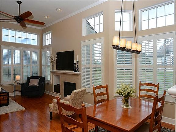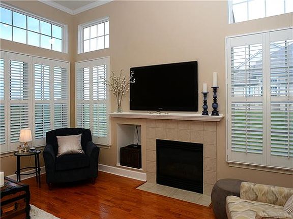 Rare 1.5 Plan- Main floor master and laundry! Such architectural flair! Dramatic staircase with iron spindles & gleaming hardwood floors invite you to 20' ceiling great room with fireplace. Master suite boasts 2 closets with bath including shower, jetted tub, granite, beautiful tile flooring. 2 BDRMS upstairs with full bath. Plantation shutters showcase wall of windows w/ green space. Large eat-in kitchen w/ lots of cherry custom cabinets & granite. Separate dining area too! Pristine- all new interior paint.