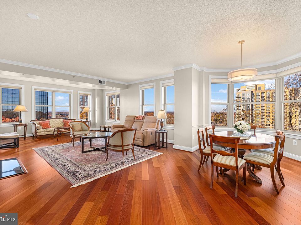 The Luxurious Stratford House... Unit 907 features sweeping skyline, sunset, and city scape views with an ever-changing palette of glorious light in every room! The expansive living room contains two sitting areas and/or additional space for an office, myriad windows and gas fireplace. A designated dining area flows into the updated granite kitchen with perfect breakfast area in bay replete with more unobstructed views. An expansive primary bedroom en suite and a versatile 2nd bedroom with full bath completes the main level. This unit has been lovingly maintained and upgraded with hardwood floors, white-on-white cabinetry, granite counters, custom lighting, window shades, in-unit laundry and freshly painted throughout. Building amenities include a designated garage parking space, extra storage, workout room, party room, front desk concierge, and a beautiful outdoor pool. Enjoy close proximity to adjacent W&OD trail, stroll to Reston Town Center, Metro, myriad shopping +restaurants and easy access to Dulles Airport. This unit is the perfect choice for today's discerning buyer who demands location, move-in condition and true value.