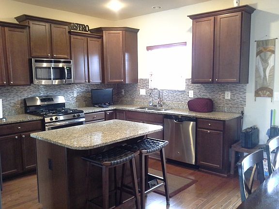 End unit TH, 3Bed, 2.5Bath, 1 Car Gar, Deck for entertaining, Fenced Backyard all backing to trees. Lower level has rec room w/ walkout to fenced backyard. Main lvl has upgraded kitchen w/ granite, kitchen island, tile back splash & stainless steel appliances & hardwood floors. Custom Blinds thru out. Vaulted Ceiling. Two Foot Bumpout. Community Pool, Clubhouse & quick access to commuter routes.