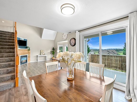 This beautifully updated 3 bed, 2.5 bath, 1,889 sqft condo in the heart of Lynden offers breathtaking southern views of Mt. Baker and the River Valley. The open layout includes a remodeled kitchen with modern appliances, vaulted ceilings, and large windows that bring in abundant natural light. The main-floor primary suite allows for single level living and features a jetted tub, walk-in shower, and walk-in closet. Upstairs, are two large bedrooms, a full bath, and a versatile second living room. Enjoy a private south-facing balcony, a two-car garage, and a peaceful setting at the end of a quiet street, just minutes from local Lynden amenities and schools. This condo feels like a home, but w/o the maintenance. Come see it today!
