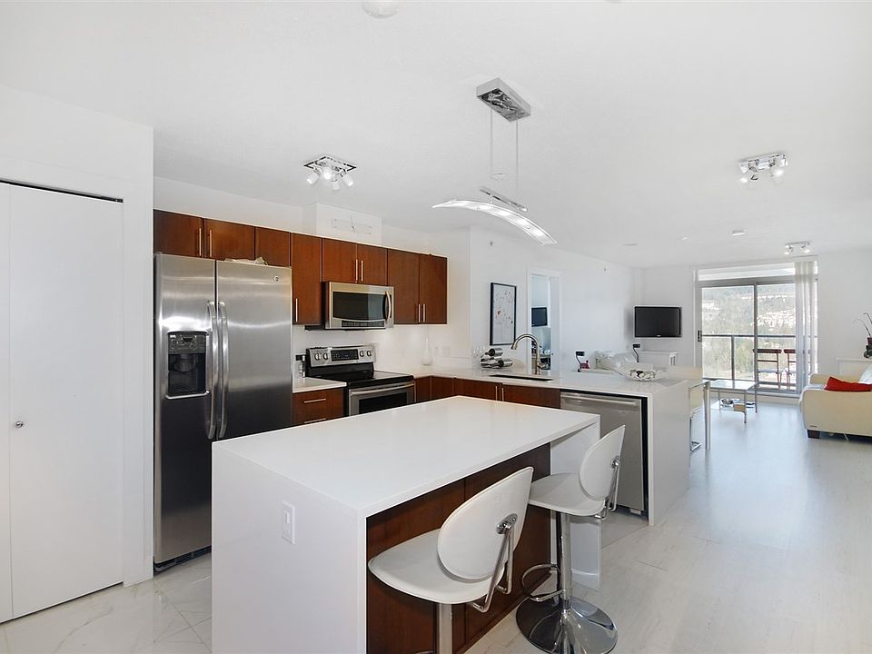 Fully Renovated with an immaculate attention to detail; This contemporary 2 bed, 2 bath features an open kitchen & living space that leads onto the private, large patio with breathtaking mountains and lake lafarge views. The Modern fireplace, high quality tile & german seamless flooring throughout give you a sense of timeless luxury. Step into the chefs kitchen with quartz waterfall countertops, high end SS appliances & plenty of cabinet space. The views continue into both of the spacious bedrooms with custom closets installed for optimal organization. You'll find both bathrooms with the same high end finishes, elegant faucets, square sinks and lighting to match. 1 park & large secure storage included. Amenities include fully updated gym, sauna, huge party room & playroom.