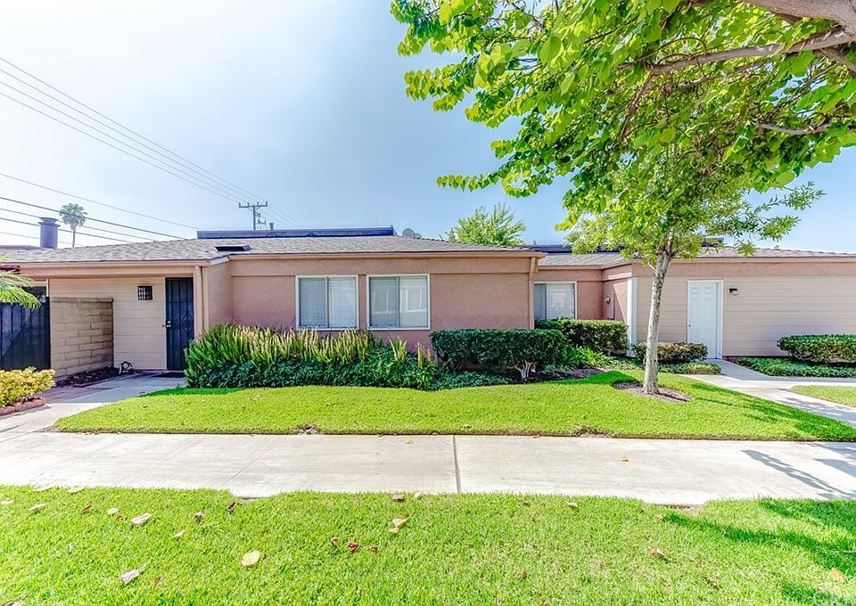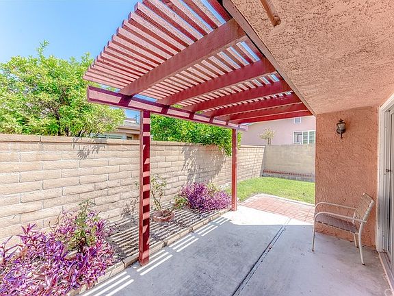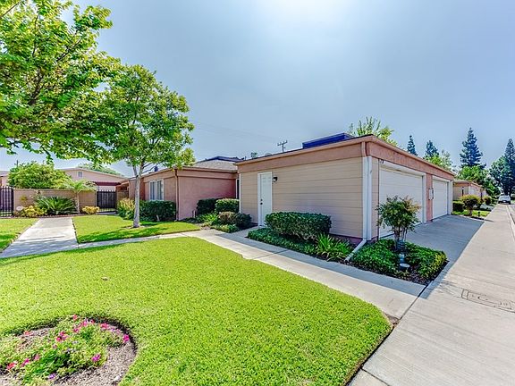 Spacious single story condo with large enclosed backyard in Northwoods Village community located near Disneyland. This three bedroom, two bathroom condo with central A/C is built with privacy and intimacy in mind. Beautiful hardwood floors throughout and ceramic tiles in bathrooms. Large living room with gas fireplace, has two sliding glass doors for access to backyard, and recessed lighting. Upgraded kitchen has granite counter tops, beautiful cabinets, lots of counter-space for food prep and opens up into dining room. Separate laundry room has plenty of storage space and electric dryer and washer hookup. Two identical bedrooms have large closets, windows and ceiling fans. Master bedroom has two large closets, large ceiling fan, and niche which can fit a large computer desk for home office use or intimate seating area. Both bathrooms have shower in tub and granite counter tops. The large, private, enclosed backyard has trellised patio, brick walkway, large lawn with sprinklers and planter beds. Home has attached two car garage, view of the community pool and is located close to shopping, restaurants and the 5 and 91 freeways.