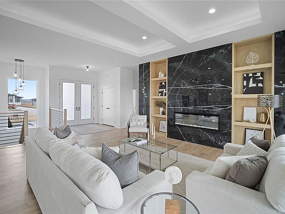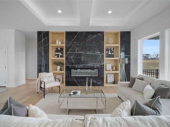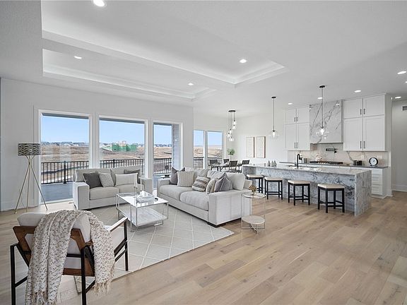 Beautiful 5 bed/4 full bath, ranch home on over half an acre, in a cul-de-sac, with a pond view! With nearly 3,800 Sq Ft of finishes, the quality, attention to detail, and additional upgrades are spectacular. The stonework and craftsmanship are one of a kind. The main floor features a gourmet kitchen w/ quartz countertops, a waterfall island, soft close drawers/cabinets, gas stove top, stainless steel appliances, and a hidden walk-in pantry. The main floor also features a spacious great room w/ fireplace, dining space, a composite covered deck, a mudroom, & 1st floor laundry. The main suite has its own bath ensuite and spacious, custom built walk-in closet. 2 additional bedrooms on the main floor, another full bath, and laundry room. In the walkout lower level, there are 2 bedrooms, 2 baths, a full bar, a spacious family room w/ fireplace, storage space, and a bonus room that can be designed as a theater, gym, or playroom. This home also features engineered hardwood flooring, 10 Ft. ceilings on the main floor, exterior stucco & stone, covered patio, landscaping, an irrigation system, and more! All information obtained from Seller and public records.