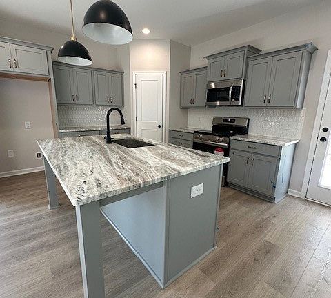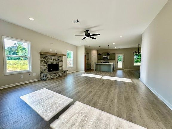 The SKYLAND PLAN features entry foyer leading to Family Room/Kitchen/Dining Area. Family Room w/wood burning fireplace featuring beautiful stone surround with stained mantle. Kitchen w/shaker styled cabinets, quartz or granite counter counters, designer tile backsplash, and Stainless Electric Range/Oven, Dishwasher, and Microhood. Owner's Suite on Main Level with Luxurious Bath featuring Tiled Shower, Garden Tub, and Dual Vanities. Set-Up for Main level laundry stack system in owner's closet for convenience. Upstairs you'll find Flex Space ideal for playroom, office, or lounging area. Two guest rooms w/vaulted ceilings and a jack-n-jill bathroom. Overized private bedroom / bathroom also found upstairs. Hard Surface flooring throughout main level common areas. Smart Home Technology Package Included! Smooth ceilings throughout the home. Fiber Cement Siding, Arch. Shingled Roof, & Rear Covered Patio. Conveniently located within minutes of downtown Opelika! Ask about $6,500 toward CC!