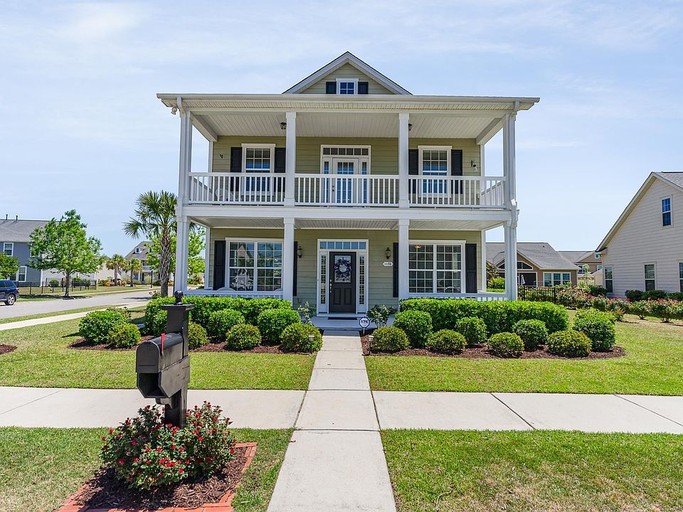 Welcome home to this stunning 5 bedroom, 3 bath Charleston style home located in The Highlands at Wither's Preserve of The Market Common! This pristine property offers an open concept, Sprucewood floor plan, featuring all new LVP flooring throughout. From the moment you step inside, you are greeted by a beautiful space that can be used as a formal dining or living room space. As you move through the foyer, you are welcomed into a gorgeous kitchen with stainless steel appliances, quartz countertops, roll-out shelves, and a spacious walk-in pantry. Enjoy preparing meals on a gas stove which features a double oven, grill/griddle and convection oven. This freshly painted home boasts a fifth bedroom that can be used as a flex area, entertainment room or home office. The generous living room offers a beautiful wood burning fireplace that can be converted into gas. There is plenty of room for storage in the attic with R51 insulation. There are separate units for upstairs/downstairs heat and air. The Reniia tankless gas water heater makes this home energy efficient. 4 of the 5 bedrooms offer spacious walk-in closets. The master suite, with it’s beautiful tray ceiling, offers direct access to an expansive balcony over the front porch. Enjoy your morning coffee while relaxing with direct views of the lovely pond and community. Located on a desirable, beautifully landscaped corner lot, the fenced backyard offers plenty of opportunity for entertaining your guests. The community offers close proximity to great dining, shopping and entertainment with walking distance to The Market Common. Enjoy a stroll around the beautiful lake or a golf cart ride to the ocean. Don’t miss out on this gem, schedule your showing today!