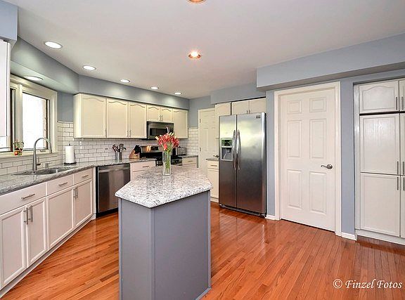 Turn key ready in sought after Cimarron!~ Newer roof, siding, windows & doors~Sun drenched white kitchen, granite counters, large island, new brkfast bar & backsplash, SS appliances~ Open concept allows for great entertaining~Hardwood floors thru main living area~First floor office/playroom~Fireplace~Huge master bedroom w/ sitting area~ Luxury MB~Full finished basement with half bath & dry bar~ Enjoy summer BBQs on large deck~Fenced yard~ Sprinkler system~ Great family home & neighborhood!