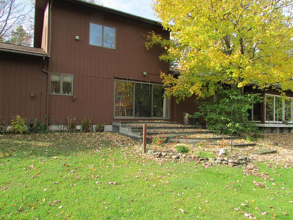 Nestled in the woods with paved drive in from highway. Peaceful setting with beautifully landscaped yard including a pond. This home boasts 4 bedrooms, open family/kitchen area, living room, dining room, office with private entrance, exercise room, and a sun room to watch birds and wild life,or to just relax in the summer. Central Air, water softener, air recovery system are few of the amenities. Energy efficient. Home warranty