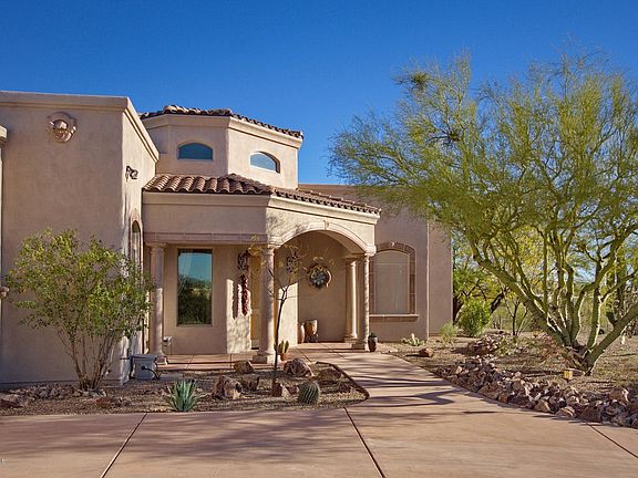 For more information on this property, contact the Listing Agent, Layne Lundeen at (520) 918-5889 or LLundeen@LongRealty.com. IN EXCELLENT TANQUE VERDE SCHOOL DISTRICT, unobstructed views of Saquaro National Monument East, the privacy of feeling somewhat secluded, yet close enough for easy access to everything. If this is what you're looking for, then LOOK HERE!!! All this & more, in this exquisite, modern, custom Mediterranean-style home on over four acres of horse property. Beautiful, scored, colored concrete floors throughout, travertine-accented bathrooms, gourmet kitchen, granite kitchen countertops, custom Alder cabinets, great room with built-in niches & gas fireplace, four bedrooms plus an office/game-room and sitting room, three sets of French doors leading to the patio...did I mention the VIEWS!?..and the City lights?! Close to trails for hiking/biking/walking/horseback riding. What are you waiting for?