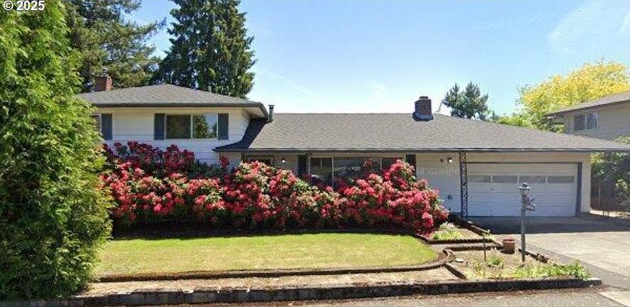 Classic 1965 Tri-level in the sought-after Ridgecrest neighborhood. 4 bedrooms, 2.5 bathrooms, great living space with a large family room and patio on the lower level. 2 fireplaces. Large sunroom off the kitchen/dining area. Oversized garage with workshop and gardening room. New carpeting and flooring. Fresh paint throughout the home. Large lot with mature landscaping. Good size grass yards, legacy rose beds and fruit trees. Easy access to Hwy 217.