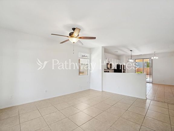 FIRST MONTH FREE RENT! This charming home in Avondale is ready for you to make it your own! The inviting curb appeal, featuring a stone facade, full desert landscaping, and a long driveway, immediately draws you in. Inside, you'll find an abundance of natural light and sleek tile flooring. The kitchen, which overlooks the living room, is a true centerpiece, boasting a beautiful glass backsplash, a spacious pantry, and a prep island with a breakfast bar. The owner's retreat offers privacy with a custom barn door leading to the full ensuite. Outside, enjoy a low-maintenance outdoor living space on an ideally situated north/south-facing lot. *This home does not have an option to purchase. This home can only be rented through Pathway Homes. Pathway Homes will never ask you to wire money or pay with gift cards.