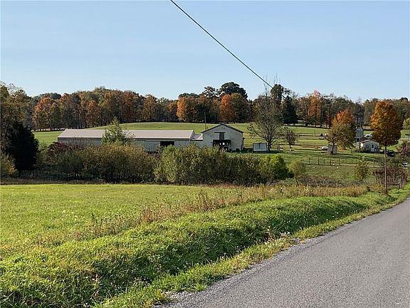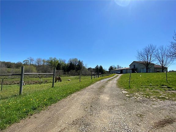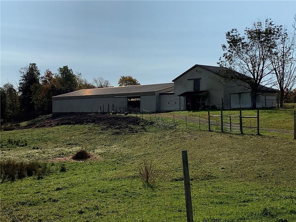 HORSES AND MORE HORSES CAN CALL THIS HOME -MAKE SOME INCOME DOING WHAT YOU LOVE IN A PEACEFUL SETTING! A Huge riding arena (80X140)', 9 spacious (12x12)' horse stalls, Wash & Tack room; plenty of overhead hay storage. 3+ acres all fenced for walking animals. The (14X36)' darling efficiency cottage used for storage and part-time "room & board" has loads of potential! Artesian Water well and in-ground septic. ONLY 20 MINUTES TO HORSE TRACK IN ERIE AND A QUICK DRIVE TO CLEVELAND OR BUFFALO TRACKS!
