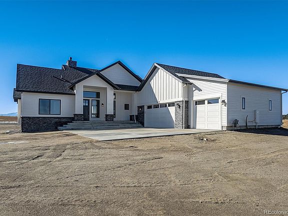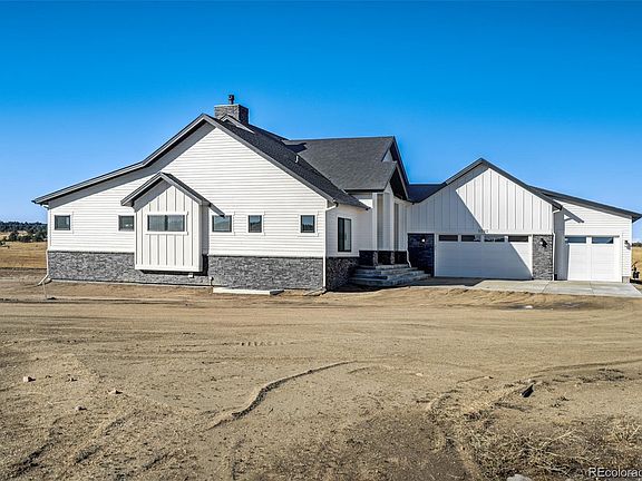 New construction. Never lived in. Gorgeous modern farmhouse located in Black Forest! This stunning residence has been meticulously designed to provide you with the ultimate in comfort and luxury. As you step inside, you'll be greeted by an abundance of natural light streaming in through a wall of windows, offering 360-degree vistas of the picturesque surroundings. The open and generous living spaces, adorned with 12-foot ceilings, create an inviting atmosphere for both relaxation and entertainment. The main level boasts a floor-to-ceiling stone detail fireplace, setting the tone for cozy evenings. Step out onto the covered outdoor deck to enjoy the views of Pikes Peak, truly bringing the outdoors in. The gourmet kitchen is a chef's delight, featuring stone countertops, a grand center island, and an impressive 11x7 walk-in pantry. The spacious owner's suite is a sanctuary with ample natural lighting, complemented by a resort-like master bathroom. Pamper yourself with a zero-entry tiled shower, a freestanding tub, a double vanity, and a generously sized walk-in closet. The main level also includes family style dining area, a laundry/mudroom connecting to the oversized garage, and a second guest bedroom. Descending to the lower level, the beautiful design continues with a recreation room perfect for movie nights or sporting events. A large wet bar/second kitchen makes it an ideal space for entertaining. Three additional guest suites and a versatile home office/bedroom/workout room complete this level. Discover a hidden gem in the form of an unfinished fortified storage space/ "safe room". The home comes with a massive 1244 SqFt 3-car garage, featuring gas stubs for heating and insulated overhead garage doors. Class IV Impact Resistant Shingles. Set in the Winsome neighborhood with 148 acres of planned open space and trails, this country community provides an idyllic setting for your new home. Don't miss the chance to make this dream home yours.