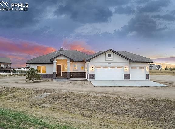 Fabulous new construction ranch style home on small acreage in the newest, fastest growing development in the Colorado Springs area. This home is one of the most popular plans Black Oak Homes builds, but this version is new and improved. Come on in, sit right down, and leave the cares of the day outside. The front door holds behind it the great room everyone dreams of when they ask for an open floor plan. Not only will you love the 12' ceilings, the floor to ceiling stone detailed fireplace, the wall of windows where you get a tremendous amount of natural lighting, but you will also enjoy the calming view that this lot features. Chef's kitchen w/11x7 walkin pantry, gets everyone excited with the incredible island meant to include everyone, the place where great conversations happen, the events of your day are shared, and entertainment is easy. Owner's suite brings back the calgon take me away dreams of years gone by. Just inside the door to your spa-inspired getaway, you will find the gracious sized bedroom, oversized walk-in closet, wood shelving, stand-alone soaking tub, zero-entry tiled shower, double vanity & more. Now featuring a second bedroom & full bath on the main! Main floor laundry gives extra storage, folding area & sink. Lower level brings even more excitement with a HUGE family room, wet bar, TWO Jr Suites, & full concrete storage room. Side load, oversized 36x26 garage + 12x8 storage area complete the home. 148 acres planned open space, walking, biking, running, dog walking trails & community fire pit. Time slows down when you are in the country and surrounded by beautiful views in every direction. Don't settle for less, build where you get it all, the feel of country living, slow paced life, the claim to your own homestead, freedom to run, play, garden (chickens & goats welcome in this tier) -while having easy access to all of the amenities you would have in town. This lot is hand-picked by the builder as the perfect place to build your dream home. 2022-04-10