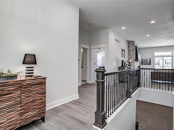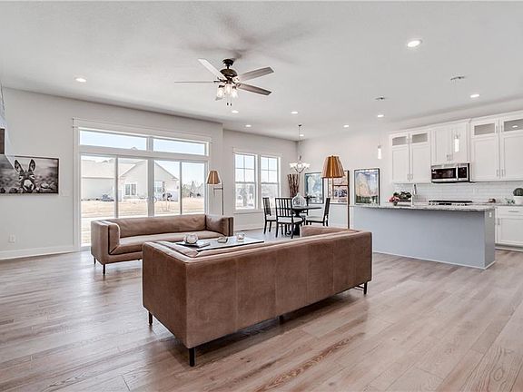 Spacious, light-filled villa features covered front porch & Patio! 2 BR's, 2 bathrooms & laundry on main level. Lower Level has 2 BR's, 3rd full bathroom & huge rec room. Gorgeous hardwoods thru main living areas, tile in all bathrooms & laundry, granite counters & custom cabinets thru-out home! Large kitchen sports ss appliances, gas range, walk-in pantry, & sizable island w/ bookshelves! Roomy walk-in closets. Stunning exterior features stucco w/ stone wainscoting AROUND ENTIRE HOME! Community pool, play area, trails, pickleball court! PHOTOS ARE OF THE FURNISHED MODEL. Great shopping & dining nearby, as well as beautiful Olathe parks & trails! Easy highway access minutes away. Our exclusive community of maintenance-provided villas offers the carefree lifestyle you deserve! SEE SUPPLEMENTS FOR FULL LIST OF STANDARD FEATURES & AMENITIES/HOA COVERAGE. Additional one time Annual Master HOA fee of $475.