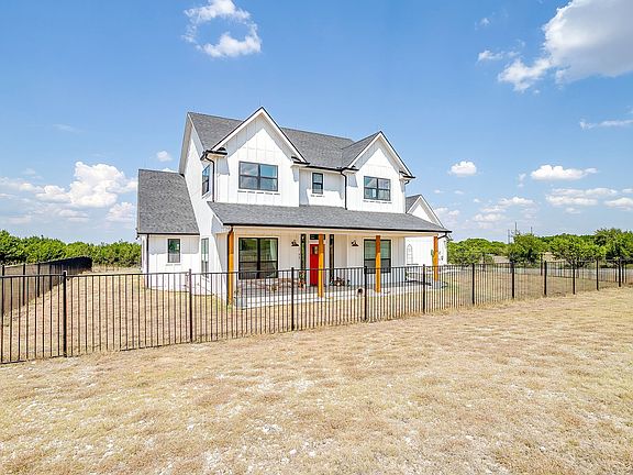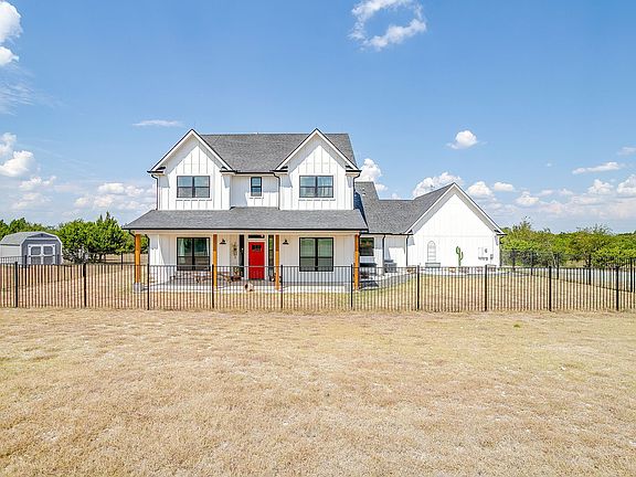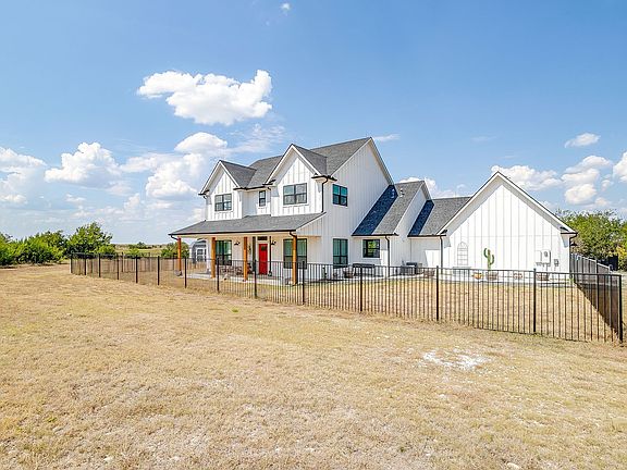 Welcome home to a 7.24 acre oasis that offers the wonderful countryside views and awesome sunrises and sunsets! This modern farmhouse is full of charm and ready for new memories to be made within the walls. You are greeted with a wrought iron fence around the home to help feel secure; a great place to hang all decorations for all seasons. Upon entering the front door, the home boast an open floor plan with stained concrete flooring, fireplace and built-in cabinets with book shelves. The kitchen host a gas cooktop range, breakfast room and kitchen island with ample counter space, cabinetry and natural lighting. The Primary bedroom is spacious and inviting with walk in closets and an ensuite with a walk in shower and garden tub for soaking. There is an additional room down stairs that can be used as an additional bedroom. Upstairs you will find two more bedrooms and a finished bonus room that can be used for just about anything you could think of; extra storage too. Come See and picture yourself owning a little piece of country living. The Last but not least, there is a storm shelter in the yard too and a hidden storage room. You'll have to schedule an appointment to see where it is!