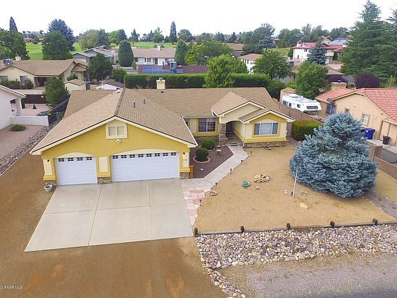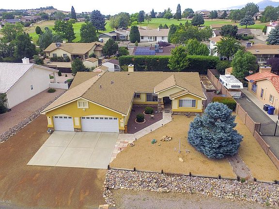 First time on Market. Original owner custom home in the much sought-after Prescott Country Club on a 1/4 acre cul-de-sac lot. Well designed and meticulously maintained, north-south facing, split floorplan, with 3 car garage. Great room with gas fireplace and vaulted ceilings. Kitchen light and bright with abundant storage. The garage has two access points into residence, 1) laundry followed by kitchen and 2) bonus/flex room, ideal for hobby/office/fitness/nursery. Plenty of room for RV parking along the garage. Oak cabinets in Kitchen, Laundry and bathrooms plus coordinating custom wood valances. Large heated and cooled Arizona room plus extended covered patio with entry into master.