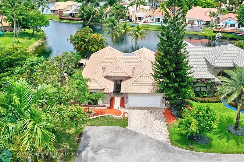 OPEN HOUSE SUNDAY, 11-2PM -- Four bedroom, two bath property situated on a corner lot surrounded by water on two sides. This home is located in the community of Rock Creek. It has a wonderful screened indoor/outdoor space with a pool and deck in the back yard. The hot water heater was replaced in 2017, the AC is from 2020, skylights are impact, roof is 1998. Roof over office was replaced in 2018. Rock Creek is a popular neighborhood in Cooper City. It has A-rated schools, playgrounds and walking paths. The Cooper City Pool and Tennis Center is also located within the Rock Creek Community and features tennis courts, volleyball courts, basketball courts, pool and gym. Use of these facilities are available through membership. Current owners say neighbors are wonderful!!