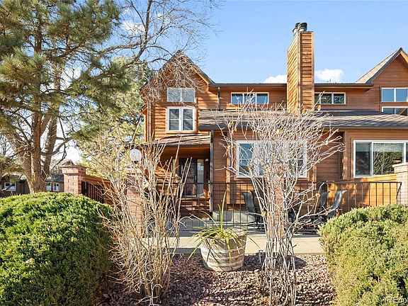 Welcome home to this sunlight filled south end unit townhouse in coveted Park Meadows. This updated townhome will not disappoint with high end features throughout. This lock and leave townhome has the perfect amount of outdoor space with a large front patio and a patio off of the primary suite. Beautiful walnut stained hardwood floors throughout the main and upper levels. Enjoy cooking in the upgraded kitchen with hickory cabinetry, granite countertops and newer stainless steel appliances. Other upgrades include all new trim, wooden staircases, newer interior doors and hardware, newer windows and custom blinds throughout the unit! Enjoy the spacious main level family room with the ambiance of the cozy gas fireplace. The powder and upper bathrooms have been remodeled with top of the line finishes. The upper level loft is a flexible space with custom built ins for both an entertainment area and / or an office space with tons of storage. The upper laundry closet includes a newer washer and dryer and a Flow Wall system installed. Top it all off with an epoxy garage floor, an extensive Flow Wall garage cabinets and wall system and new garage door opener. This home has been well cared for and you can see the pride of ownership in every corner. Enjoy the community pool and this central location which is close to Denver, Boulder and the I70 ski corridor. HOA is unique in that it includes the same amenities as most HOA's but it also includes cable and water and sewer.