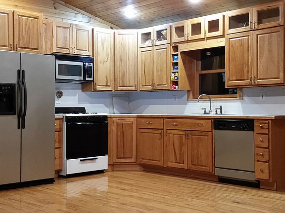 Beautiful ranch home with real oak hardwood floors, custom hickory kitchen cabinets, and knotty pine tongue and groove cathedral ceiling. There is plenty of room for additional bedrooms and bathrooms in the finished basement which has 9 ft ceilings. The garage is apx 1,800 sq ft and has it's own electric meter. The garage can hold up to 10 snowmobiles or atv's! Anderson windows and a brand new furnace installed in 2016 make heating the home very affordable. There are no neighbors within sight of the house and there are excellent recreational opportunities nearby. The pine river and hundreds of miles of snowmobile trails are just down the road!