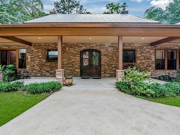 Located in the gated community of Chasewood on FM 2854! Superior ranch style home on almost two acres. This unique floor plan allows for seamless flow for entertaining and boasts a 2000 sq. ft. covered back porch with an outdoor kitchen. The larger Owner suite has a double-sided fireplace and a separate sitting area. There is also an Oversized frameless glass shower in the larger master bath and elegant 6 ft. air jetted built in tub. The efficiency sized apartment above the three car garage could be used for a home office, or extended guest suite. Gorgeous upgrades include the beautiful double front doors and stunning wood floors. Fantastic island kitchen with Exotic granite throughout, has built-in stainless appliances and custom cabinetry with undermount lighting and stone backsplash. Spacious secondary beds and plenty of storage! Built in surround sound inside and out and can be controlled into zones. Country style living just minutes from I-45 and close to restaurants and shopping.