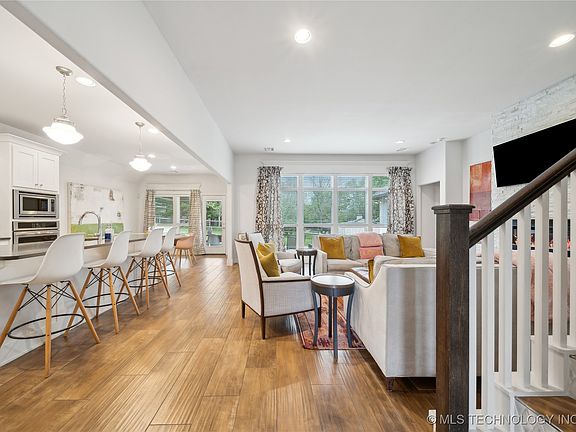 Stunning modern home in the desirable gated community of Somerset, within the top-rated Bixby North school district! Tucked at the end of a quiet cul-de-sac, this 4-bedroom, 3-bathroom home sits on an oversized lot that backs to a lush area with mature trees, offering peaceful views and semi-privacy with no immediate rear neighbors. Inside, you'll love the open-concept layout, perfect for everyday living and entertaining. The chef 's kitchen is a true standout, featuring double ovens, wrap-around pantry, two dishwashers, and stylish finishes. The secluded primary suite offers a spa-like retreat with luxurious touches. Flexible floor plan: Downstairs includes 2 bedrooms, 2 full baths, an office, and main living spaces. Upstairs offers 2 additional bedrooms, a full bath, and a spacious game room. Additional highlights include a 3-car garage, covered patio, fully fenced yard with double gate, and beautifully landscaped surroundings. Welcome to the perfect balance of privacy, comfort, and style, just minutes from everything Bixby has to offer!