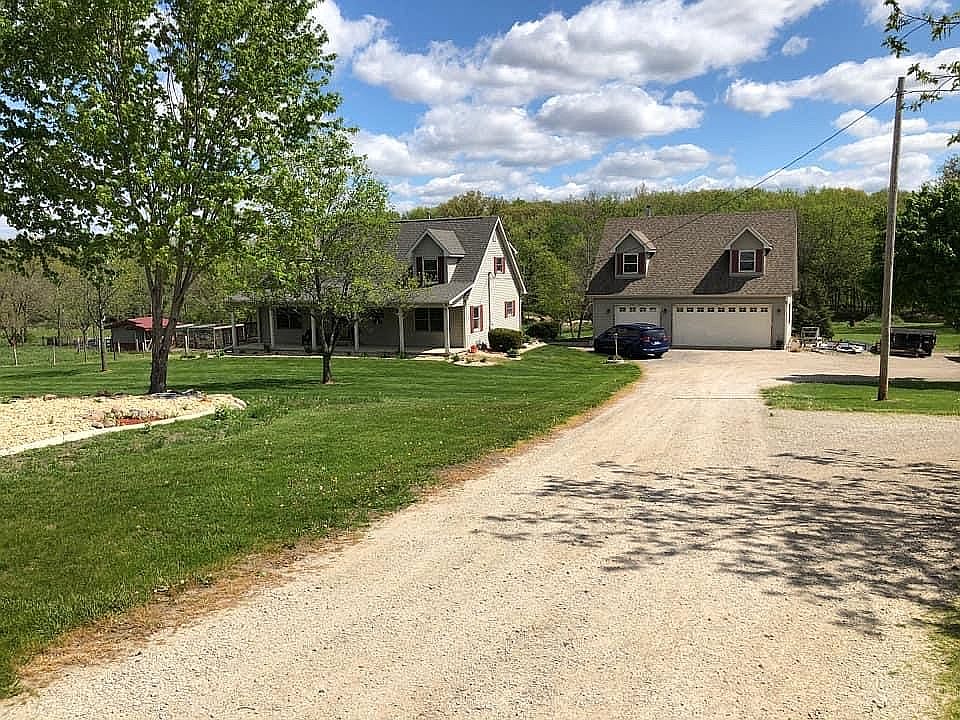 Listing our house for sale with just over 7 acres zoned Ag with 6 bedrooms total (3 upstairs, master on first floor, and two in the finished walkout basement) and 3 bathrooms. Approximately 2,400 square feet between the two stories and and extra 1,200 with finished walkout basement totaling 3,600 square feet of living space. Fully finished walkout basement with 2 bedrooms with closets. Wrap around porch with composite decking and just painted all of the handrail components. Detached 2 story 3 car garage with full upstairs and bathroom roughed in. Garage upstairs would make a great hangout, apartment, or just storage. Approx 1 acre pasture for cattle, horses or other livestock with chicken coop and run. 12’x16’ pole barn that connects the pasture and the chicken run. Clear creek runs right through the center of the property and crosses over what used to be the shortest railroad system in the U.S. (Midland Railroad). Portions of the track are still in place. Approx 3.5 acres of the land is timber with mature oak and walnut trees. Brand new roof on the house, furnace, A/C, hot water heater, new large 1x6 & 1x4 interior trim throughout, 2 of the bathrooms are completely remodeled with master having a large walk-in custom shower, quartz countertops, and hardwood flooring in most of the first floor, paint throughout, entryway and upstairs ceiling accent all of which was done this year. Low Ag zoning taxes. Natural gas and xfinity internet. Take advantage of the low mortgage rates and Newark is a great school district with the grade school, middle school, and the high school each less than 5 minutes away. We regularly get all kinds of deer and other wildlife in the yard.