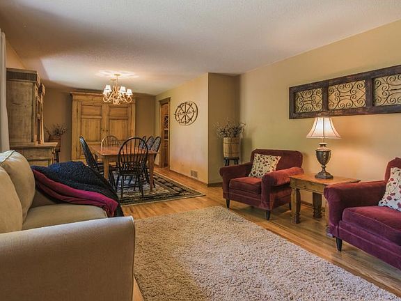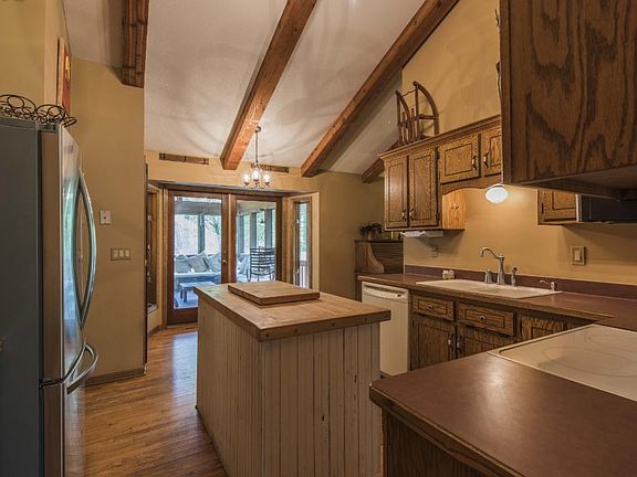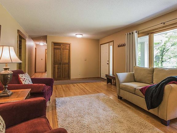 Set amongst mature trees, this sprawling walk-out rambler offers 6 bedrooms, 4 baths & open living spaces. Main level features 3 bedrooms, a huge family room w/ soaring vaults & dramatic floor to ceiling fireplace, large eat-in kitchen that walks out to the 3 season porch overlooking the expansive backyard. Lower level includes 3 additional bedrooms, game room, bar area, full bath & second fireplace. Don't miss the 2-tiered maintenance free deck, fire pit & detached 2-car garage. Hurry today!