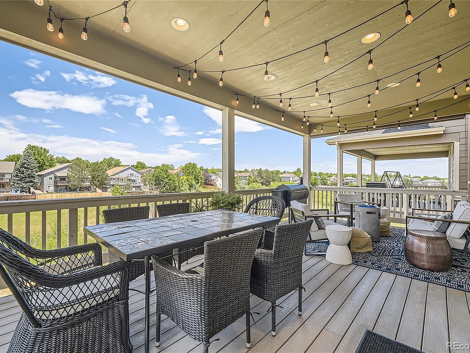 Greenbelt and Foothills views in the heart of Littleton!! This extremely well maintained and updated 2018 built home in Southwest Littleton is a tough find and it simply can't be beat. As you approach the house you'll notice the south facing driveway that leads to your three car tandem garage. Entering the house, the gorgeous engineered hardwood floors that extend throughout, really add a luxurious feel. You'll also notice how open the living space is. Look up as you wonder the home and you'll find over $10K worth of updated lighting fixtures throughout the home. The fully updated, bright and modern kitchen has stainless steel appliances (high end Samsung refrigerator conveys), quartz countertops, an undermount stainless steel sink and 42 inch cabinets that have been so well maintained its like they are brand new. A dining area next to the kitchen offers plenty of room for entertaining family and friends or you can walk outside and enjoy the views from one of your two trex decks. You'll be hard pressed to find better Foothills and Greenbelt views anywhere in the Denver metro. The open floor plan creates an open yet cozy space to enjoy the warmth from your gas burning fireplace in the family room. The primary suite includes a beautifully updated 5 piece bathroom and large walk in closet. Upstairs, there are also 3 other bedrooms and a fully updated modern bath. The upstairs laundry room (washer & dryer convey) includes a handy stainless steel utility sink. Head down to your walkout basement and you'll notice a tankless water heater, sauna and pre-plumbing so you can add a bath/bedroom and really make the space your own. Head out the door and you'll once again be treated to those awesome Greenbelt/Foothill views from your second deck. This home is truly move in ready and includes a newer (2022) class 3 hail resistant roof. All this and close to all that Littleton has to offer with tons of shopping, restaurants and easy access to the mountains, major roads & highways.