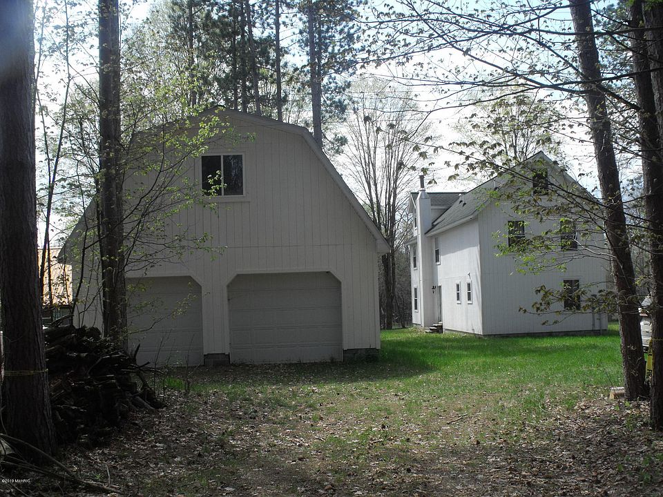 Muskegon River Waterfront (100 ft) Beautiful view with a 3 story home yet to be finished on the inside. Alot of the materials are all bought and waiting to be installed. Main floor has Master bedroom, laundry, Large Bathroom with a tiled walkin Shower, kitchen and living room. Second floor, 3 bedrooms full bath and a additional room used as an all purpose room. Third (top floor is setup to do what you would need as a possible Large bedroom or more than 1 bedroom. Plumbed for a bathroom. 2 furnaces One on main floor and one on Third floor. So Much to work with and so much room. The 25 x 32 garage is huge with a loft up top for storage with stairs for access.