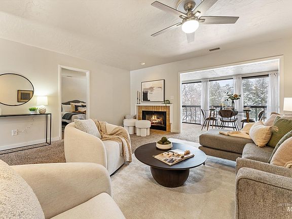 Updated and renovated open concept condo nestled in peaceful park-like setting and centrally-located on Boise's West Bench. Just minutes from the Boise River, St. Al's Hospital, Boise Towne Square Mall, the Airport and downtown Boise, this condo would make a fantastic primary residence, Airbnb or rental! The floor plan features a spacious 200 square foot bedroom, a living room with a gas fireplace, a remodeled kitchen with new stainless appliances including a gas range, and a sitting room or dining space that overlooks the community ponds, fountains, and walking paths. Other updates include new paint, new furnace, and new AC unit. Condo also has a covered carport with locking storage closets and a 2nd parking space nearby. HOA dues cover access and maintenance of community swimming pool, landscaping, garbage pickup and maintenance of building exterior and community clubhouse.