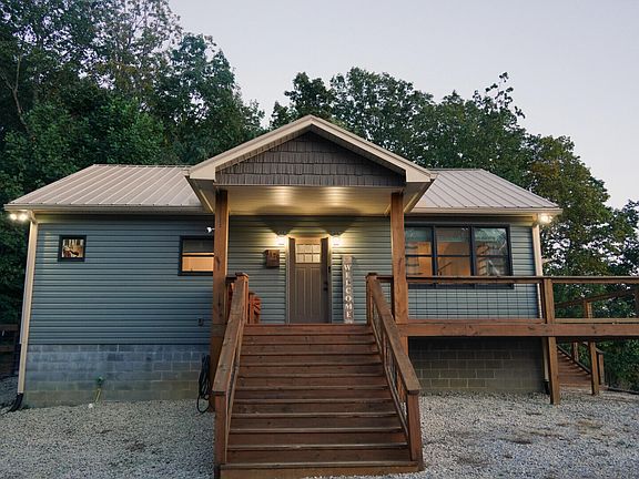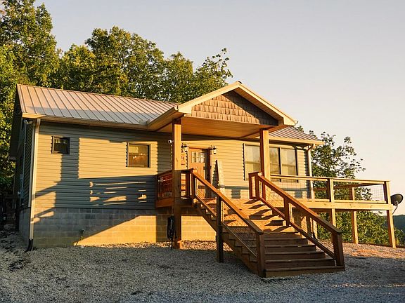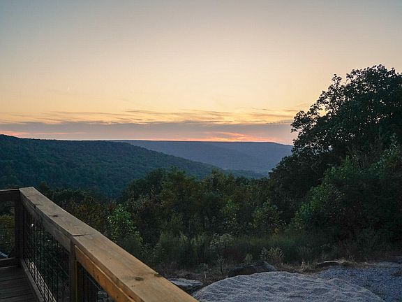 This mountain retreat home comes with a remarkable bluff view, an open floor plan and over 18 acres of beauty. Rest, relax and rejuvenate in this project free paradise. Enter into the large open space that features luxury vinyl flooring and cathedral ceilings in the main living area. The custom designed kitchen features granite countertops, a large butcher block island and vintage 1943 porcelain drainboard sink. The brass faucet, vintage pendant light, 42-inch white craftsman cabinets and hand painted ceramic tile create the perfect family gathering kitchen. The home features 9-foot ceilings, large master bedroom, walk-in shower with custom tile and walk-in closet. Walk through mud room/laundry room with frosted swing door. Wrap around deck with pergola to enhance enjoyment of evening sunsets. Fenced area out back door for canine family members. Acreage includes winding driveway for privacy, seasonal creeks, waterfalls, wildlife and rough-cut trails for walking and ATV's.