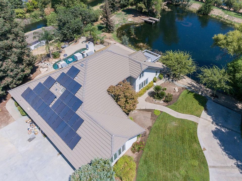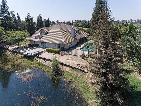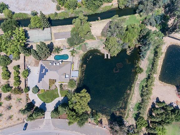 What a wonderful opportunity to own your own resort style property in Fresno. This large family home sits on approximately 2 acres with its own fishable lake and the Northern property boundary is Fancher Creek. This home features 4 bedrooms, 3 baths, home office with built in desk and cabinets, pebble tec pool with a rock waterfall and tennis courts. Property is energy efficient with 6 inch outside walls, R57 rated insulation, solar electric service provided by Clean Power at 30% lower than PG&E rates and your own private lake. There is a boat dock and a patio deck from the house overlooking the lake. Property owns the ditch water rights for filling. The three car garage sits on the south side of the home with a wide circular driveway and electronic gate for vehicles entering and exiting. Perimeter fencing around most of the property.