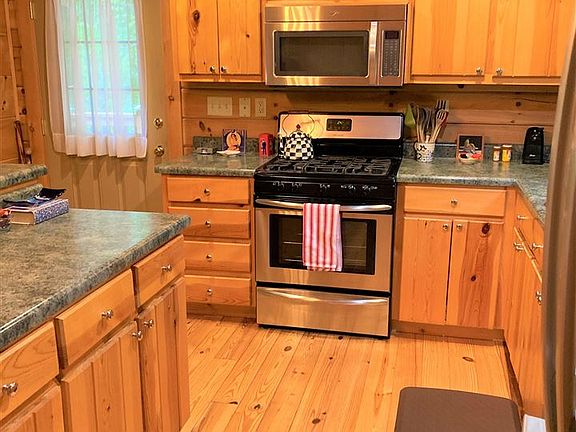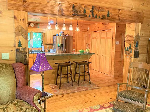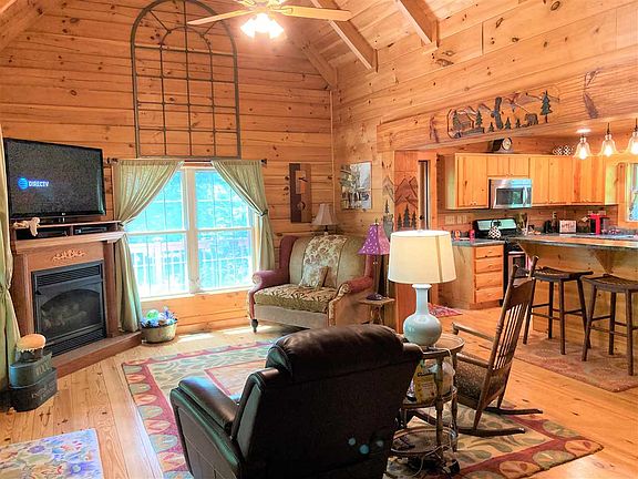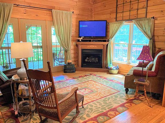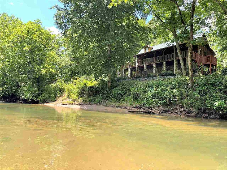 RIVER FRONTAGE in a natural wooded setting to the ultimate retreat! Steps down to the river for fishing, rafting, tubing,or kayaking in the gated community of Green River Highlands on 3 acres! Covered front porch extends the front of the house for the AMAZING river view! Enter the family room with cathedral ceiling features a FP/gas logs! Spacious kitchen/dining area has access to the side deck for grilling, and closet with W/D! Master suite has 2 closets and its own entrance to the front porch! Master bath features double vanities and a tiled shower! 2nd. bedroom has full bath with tub/shower! Sleeper loft has it's own half bath! Full unfinished basement currently used as a recreation/family room! Patio with shower. Detached double garage/workshop with an apartment that could be the perfect Airbnb/Guest quarters! Single carport, storage building, and more than ample parking!