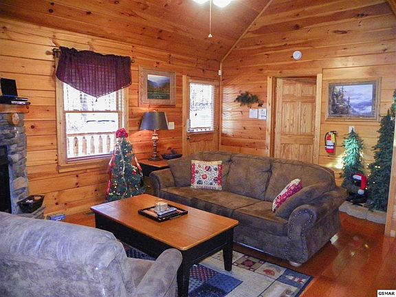 Perfectly situated between Pigeon Forge and Gatlinburg in Sky Harbor, this cozy, 2 Bedroom/2 Bath Log cabin could be your "Blissful Retreat"! Paved roads lead you to this charming cabin nestled in the woods. Relax in front of the gas log fireplace or play a game of pool in the loft game room area. Soak in the Hot tub on the screened in porch after a day of hiking. Secluded yet only a short drive to Dollywood or the shows and restaurants in Pigeon Forge and Gatlinburg. On a successful rental program since 2008, this could be a wonderful investment cabin, vacation home or private retreat! (NOTE: HOA transfer fee of $150.00. Sky Harbor pond is stocked with fish so that guests can go fishing.)
