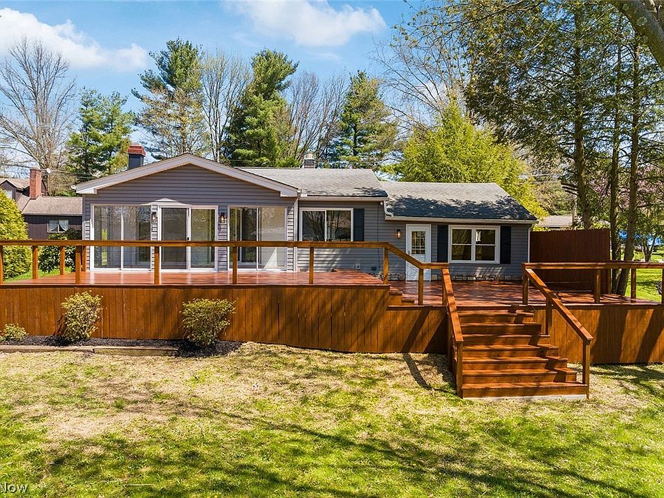 Breathtaking waterfront views on Atwood Lake. This rare lakefront ranch home is perfect for those wanting to maximize their time enjoying the 1,540-acre lake. Inside and out, this home had a complete custom remodel in 2024. Situated on approximately .18 acres of owned land (short-term rental opportunities + no lease fees) borders directly to the water. Features include 2 small-scale bedrooms, 1 full bath, an open-concept kitchen, and living room, enclosed sun porch leading to a brand new 1,000+ SF deck with stunning views of the lake. The attached finished garage with separate gas heat and a Nature Stone floor is currently being utilized as additional living space. New concrete parking area. Gas FA and central air. Public sewer and shared water well. Included in the purchase is the right to join the association, which provides access to the private beach and dock spaces located just 200’ down the shoreline. Schedule your showing today for this easy-keeper waterfront home.