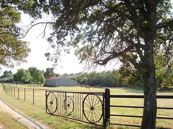 Your own little oasis for you and the horses too! Perfectly maintained, 23.89 acres w/pipe fencing for the horses, plenty of pasture, partially wooded, pond, creek, 42x50 5 stall barn, 14x28 storage building, storm shelter, gated entry, beautifully maintained and updated home, gorgeous view, and totally private. This one has it all! Formal Living, Dining, and Family Room w/Fireplace. Updated kitchen w/quartz countertops, stainless appliances, 5 burner gas cooktop, new dishwasher in 2014, double ovens, microwave, pantry, and breakfast bar. Utility room w/lots of storage and half bath off of the kitchen. Nice sized bedrooms and updated hall bath. Master Bedroom w/separate makeup vanity, walk-in closet, and 3/4 bath. New roofs on house, storage building & barn in 2013. New siding on storage building in 2013. Attic Fan 2013. Added insulation over garage in 2010. Garage is carpeted w/window heat and air unit, propane heater, and insulated doors. Security system. Covered Patio.