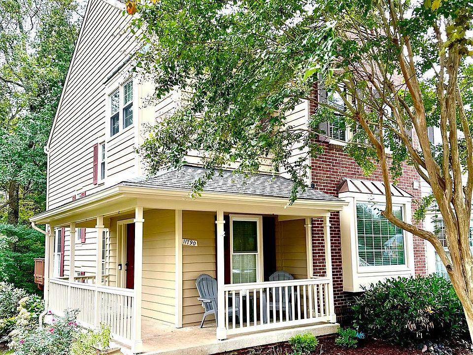 Introducing this stunning townhouse nestled in the heart of one of North Reston’s most picturesque neighborhoods. A captivating blend of modern comfort and natural serenity, this 3-bedroom, 3.5-bathroom home offers a lifestyle of convenience and elegance, with a multitude of desirable features that make it a true gem. Step inside and be greeted by the inviting ambiance of the open-concept living space, where new hardwood floors grace the main level, leading you to a completely renovated kitchen. The kitchen boasts sleek quartz countertops, stainless steel appliances, ample (new) cabinet space, and a large eat-in area, creating a perfect setting for culinary creativity. From the living room with gas fireplace, access the large deck to enjoy a relaxing view of beautiful trees in the backyard. One of the highlights of this home is the walk-out level basement, featuring a family room with fireplace and a huge bonus flex room complete with a full bathroom. This versatile space opens up endless possibilities, whether it be a cozy entertainment area, a home gym, or a private guest suite. The basement also leads to a patio, overlooking the tranquil backyard that backs to trees and a little stream. Upstairs, the owner's bedroom is a sanctuary of comfort, featuring a large walk-in closet, a beautifully renovated bathroom with a deep tub, and a stand-up shower. As a delightful bonus, the owner's suite also includes a loft space with skylights and a dedicated storage space, ideal for a home office, exercise room, or whatever your heart desires. The townhouse is designed for practical living, offering an abundance of closets throughout the home to accommodate all your storage needs. A wrap-around porch adds a touch of charm and provides a perfect spot to unwind and enjoy the surrounding natural beauty. The convenience of this location is unparalleled - less than half a mile to North Point Shopping Center, you have access to a variety of shops and restaurants. Additionally, this home is in close proximity to commuter roads, Reston Town Center, farmers markets, art festivals, and endless shopping opportunities, making every day a new adventure. This home has been meticulously maintained, with major systems updated for your peace of mind. The water heater was replaced in 2019, the roof and skylights in 2020, and windows in 2019. HVAC (2008 & 2013) underwent a thorough inspection in 2022, ensuring optimal comfort year-round. Even the washer and dryer were updated in 2022, adding to the home's appeal. Don't miss the chance to make this beautiful townhouse your own. Schedule a tour today!