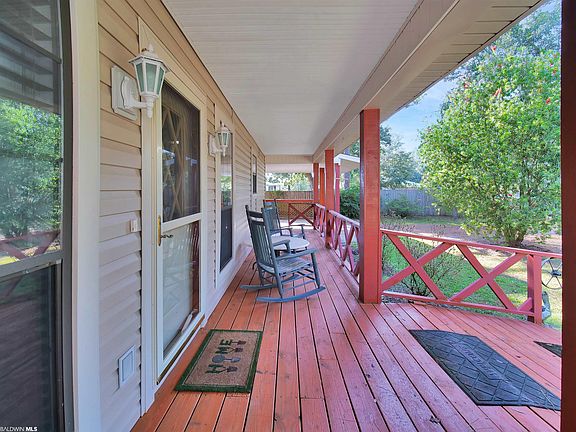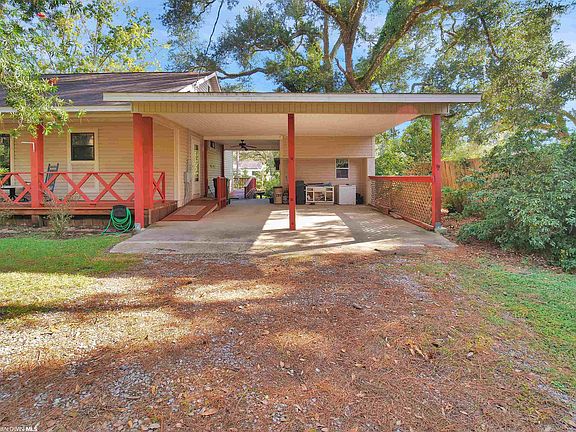 Bring your boat and come experience Fish River, where your mail is delivered by water! This charming bayou front cottage offers 150' of waterfront and quick access to Fish River. There is a covered boat slip with lift, bulkhead, and boardwalk. This property is tucked away, so the setting here is very peaceful. You can enjoy direct water views from the renovated sunroom or the spacious back deck. The sunroom has a mini split ac unit, new waterproof vinyl flooring, gorgeous cypress ceiling, recessed lighting, and cork wallpaper. The rest of the home also features some well-done upgrades. All new ceiling fans, new light fixtures, and new paint. The kitchen is equipped with plenty of cabinet space, a new farm sink, and a pantry with pullout shelves. The custom bar with marble countertop and wine cooler is a nice addition! The master bathroom has been completely remodeled and has a new shower, new custom vanity with granite countertops, and new barn doors. There are gardenias, azaleas, Meyer lemon trees, and vines throughout the property. There is also a 22x24 metal outbuilding and a double carport.